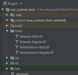 프로젝트의 루트 경로에 fonts 디렉토리를 생성 한 후 사용할 폰트들을 복사한다.