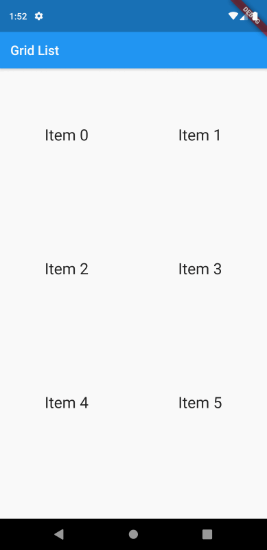 In some cases, you might want to display your items as a grid rather thana normal list of items that come one after the next. For this task, usethe [`GridView`]({{site.api}}/flutter/widgets/GridView-class.html) widget.The simplest way to get started using