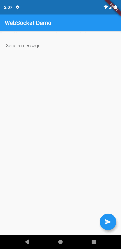 서버로 데이터를 전송하기 위해서 Form 위젯에 TextFormField를 등록하였고 이 폼필드에 TextEditingController를 등록하여 플로팅버튼이 눌릴 때마다 폼필드의 입력된 텍스트를 웹소켓 서버로 전송한다. 또한 StreamBuilder 클래스를 통해서 서버로부터 데이터가 수신될 때마다 화면에 새로운 텍스트를 출력한다.