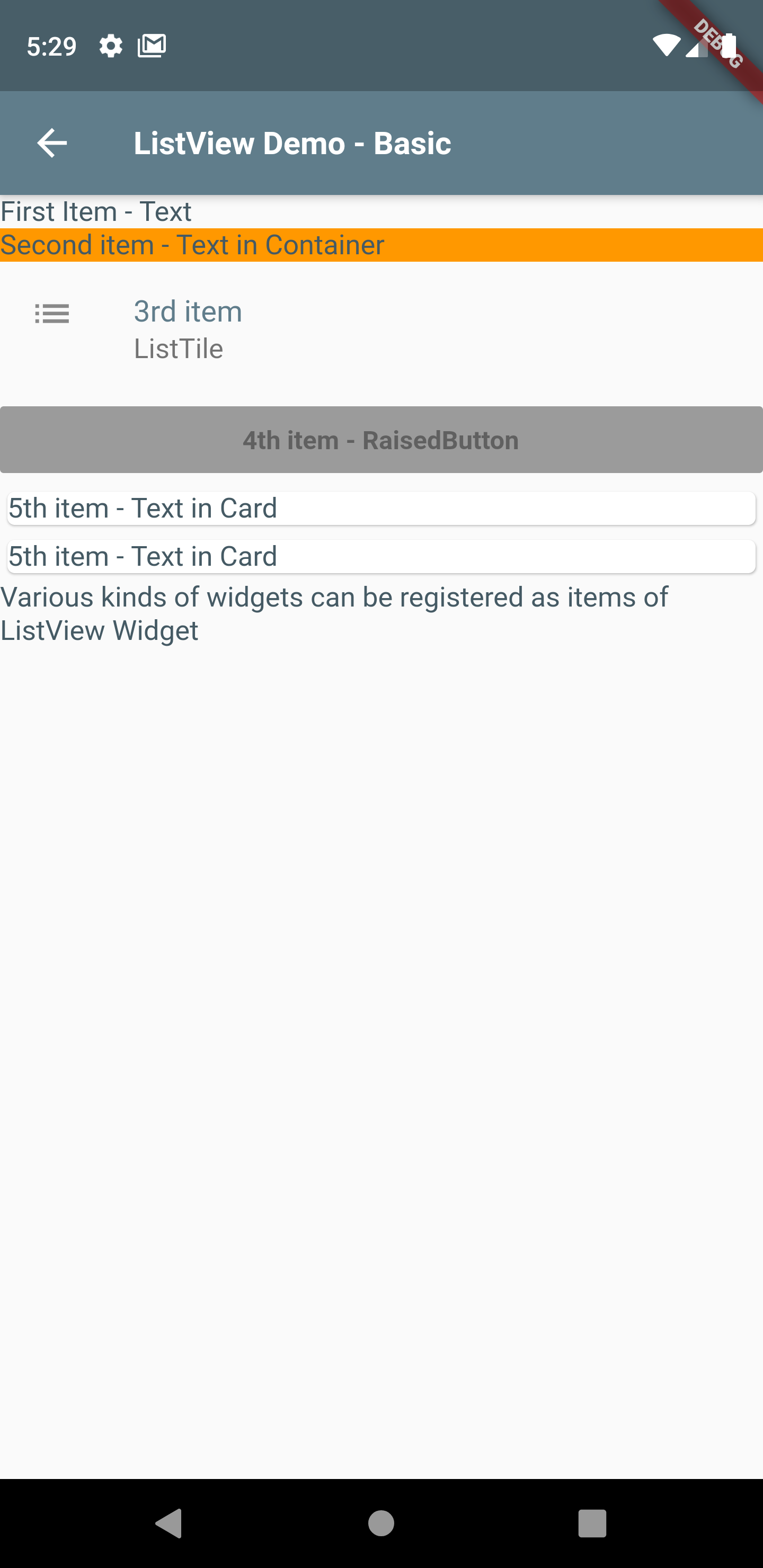 appBar: AppBar(title: Text("ListView Demo - Basic")),