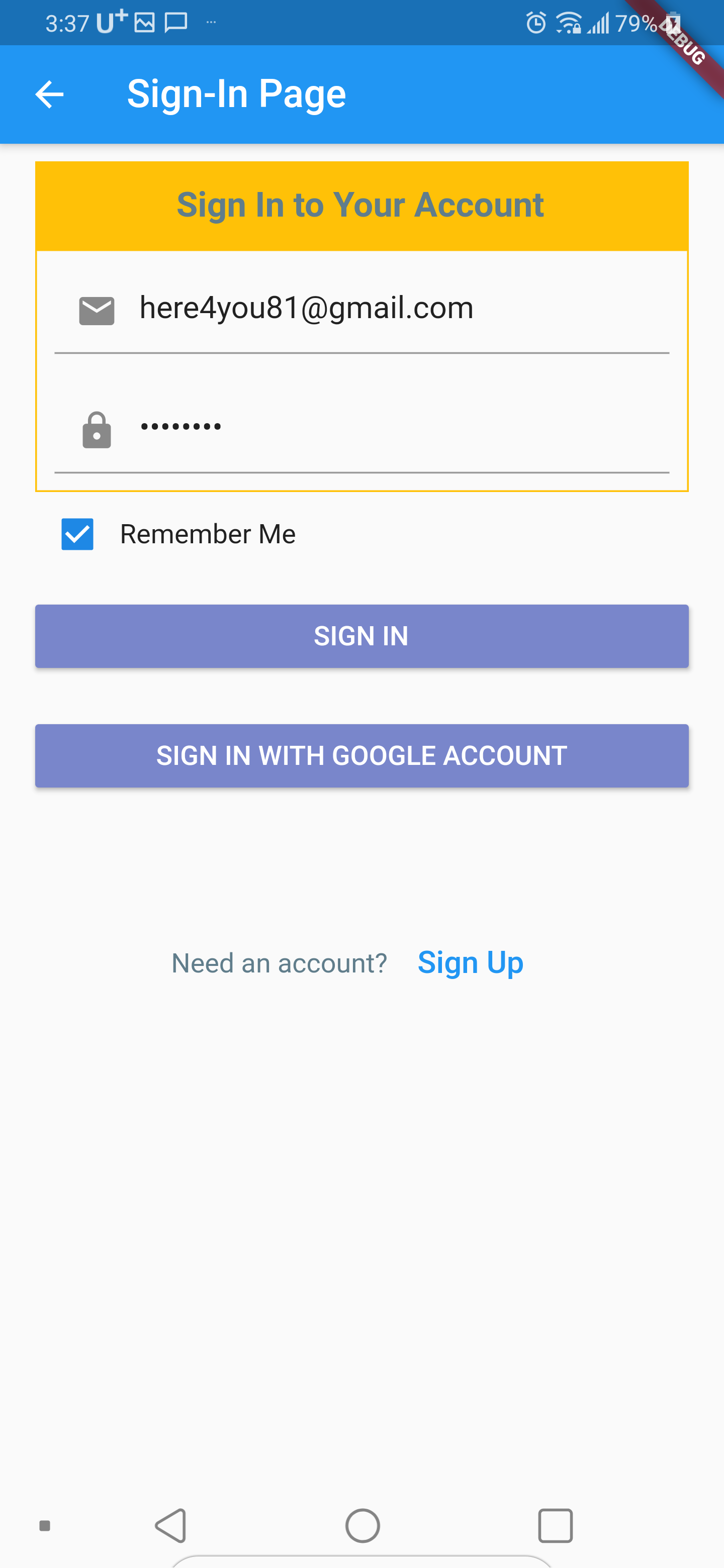 앱에서 "SIGN IN WITH GOOGLE ACCOUNT" 버튼을 클릭하여 로그인을 시도한다.