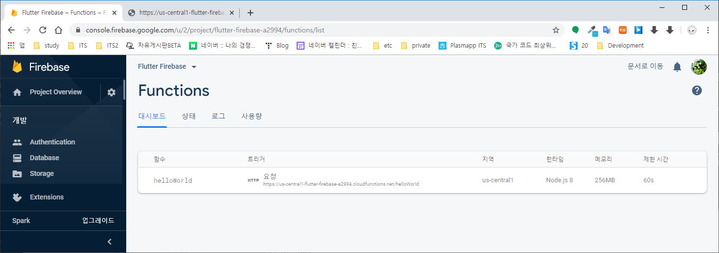 Firebase 콘솔에서도 함수가 추가된 것을 확인할 수 있다.