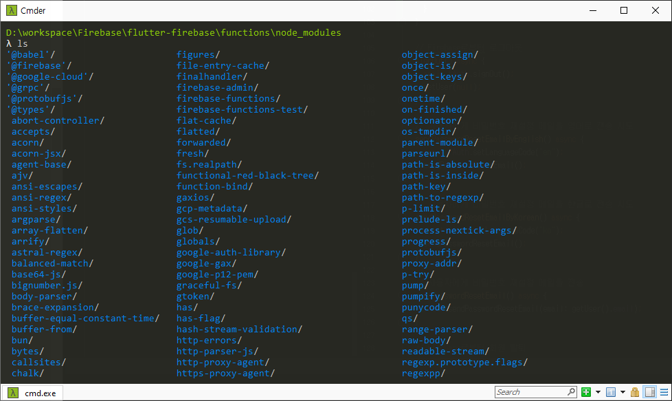 index.js 파일은 Cloud Functions 코드의 메일 소스 파일이다. 현재는 firebase-functions 라이브러리를 import(require)해서 functions로 할당하는 내용만이 존재한다.