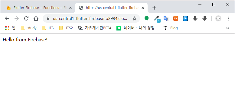 helloWorld 함수가 Firebase로 배포(업로드)되고 다음의 URL로 할당되었다.