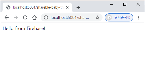 잠깐 살펴보면, 에뮬레이터 허브라는 것이 로컬의 4400 포트에서 실행되었고, Cloud Functions 에뮬레이터는 로컬의 5001 포트에서 실행되고 있다.