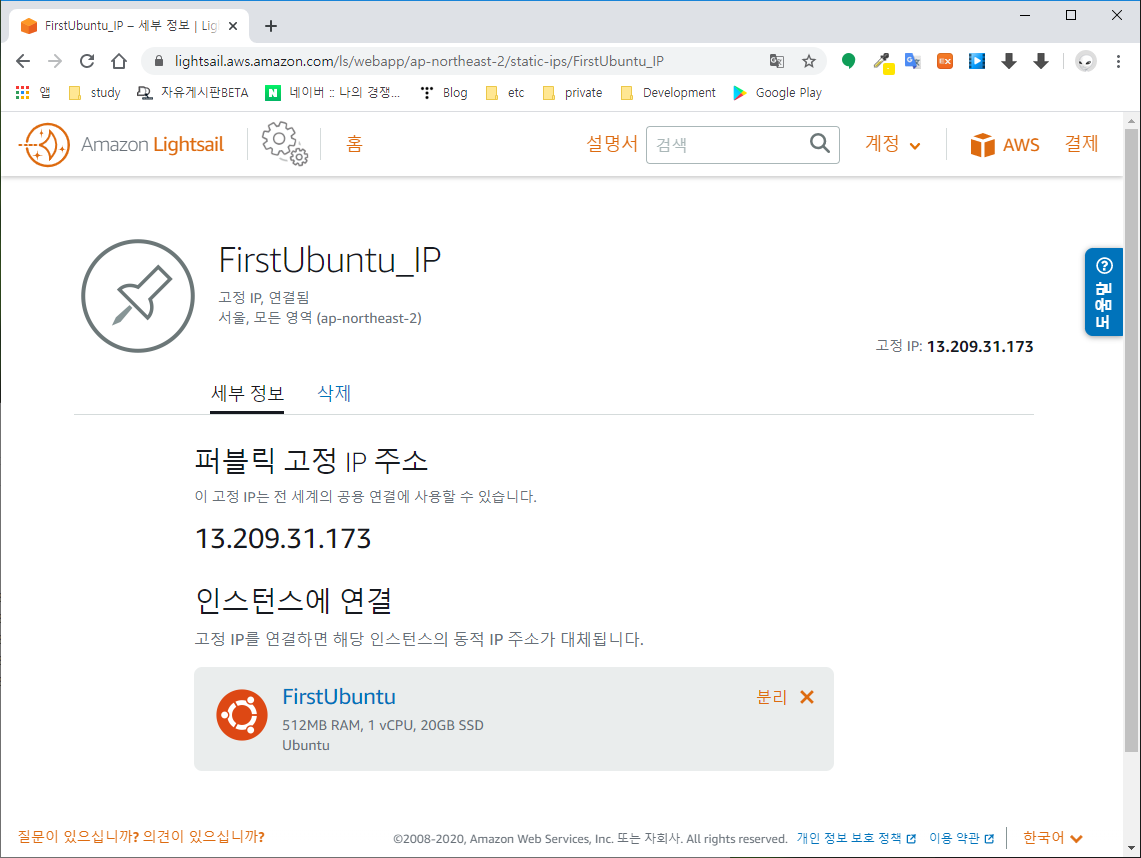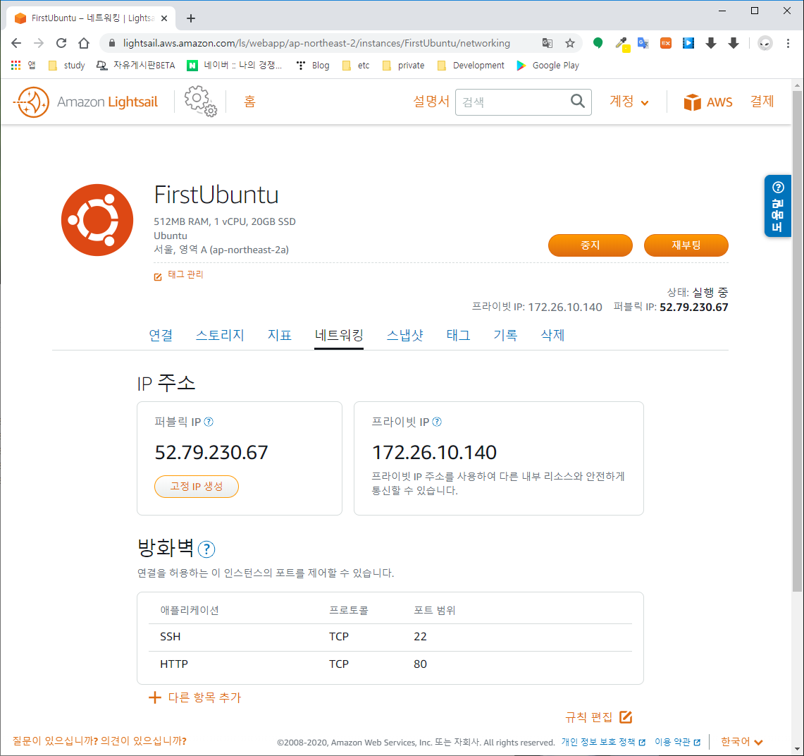 | Lightsail 사용법 - 우분투 인스턴스 설치 (0) | 2020.04.06 |