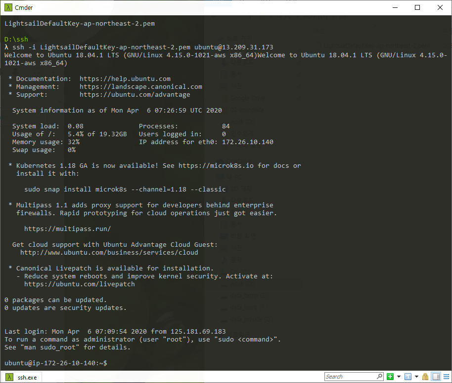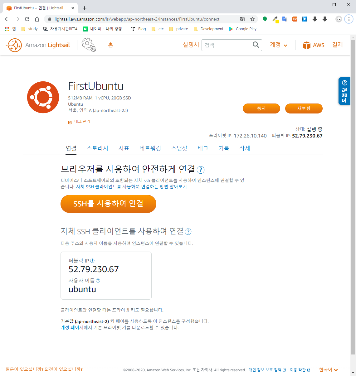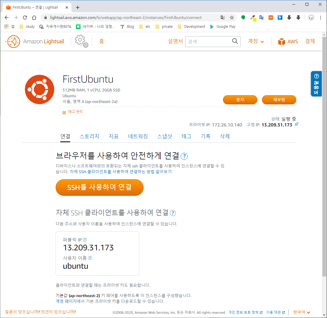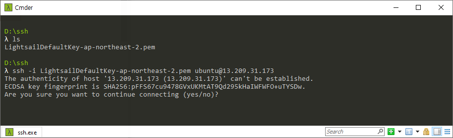 $> ssh -i LightsailDefaultKey-ap-northeast-2.pem ubuntu@13.209.31.173