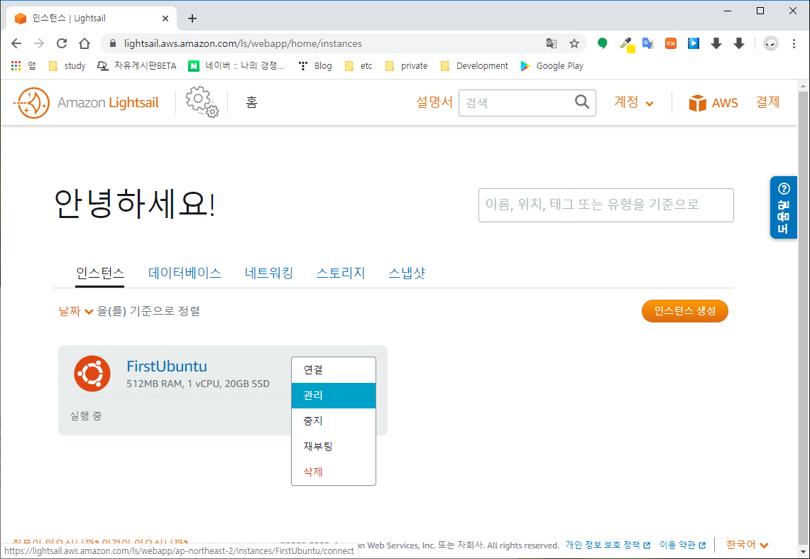 지난 강좌에서는 Lightsail을 이용해서 우분투 인스턴스를 생성하는 방법에 대해서 알아봤다.