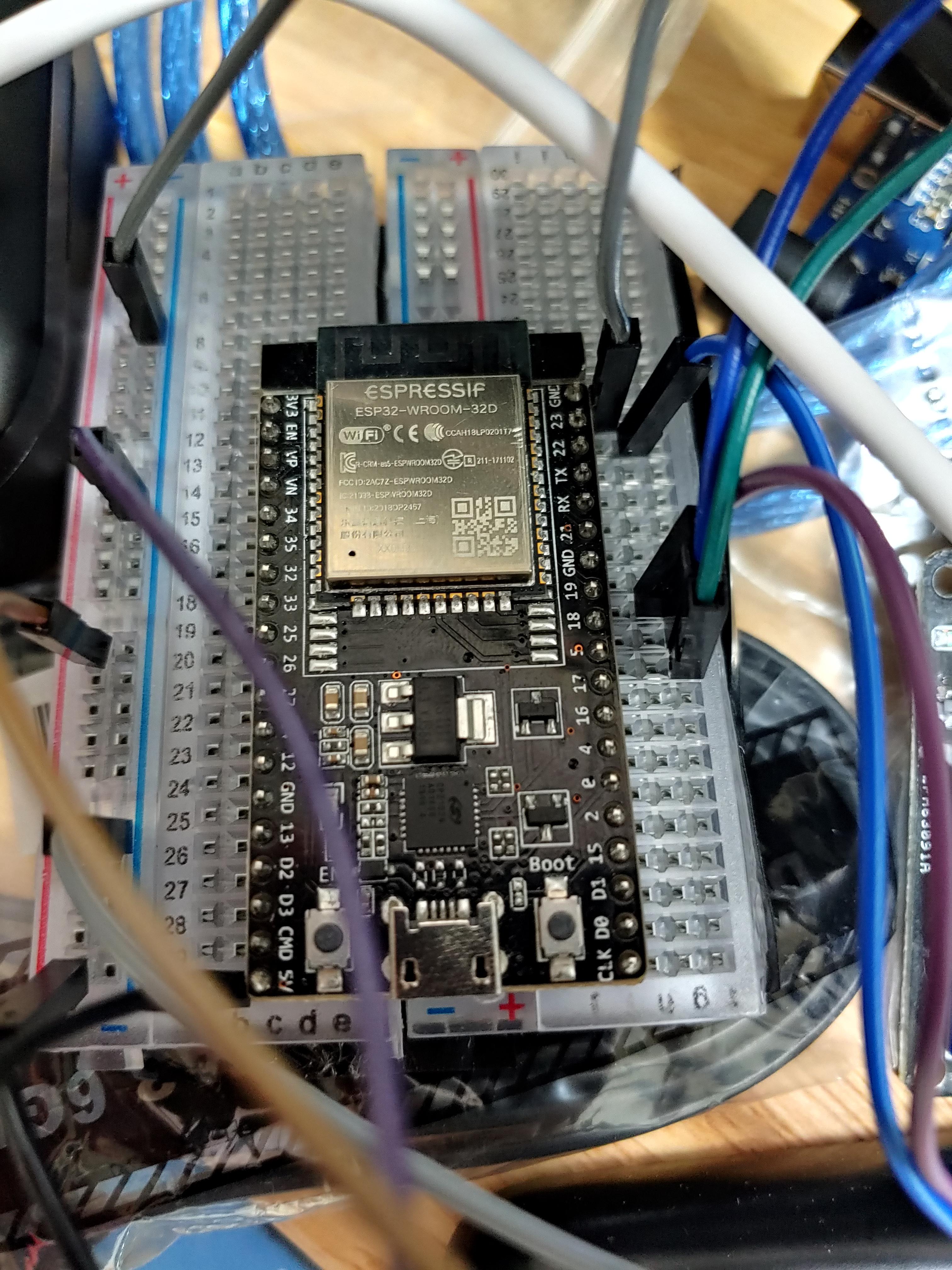 아래는 ESP32 개발용으로 많이 사용되는 ESP32-devkitc V4 보드로 실제 본인이 꾸며서 개발중인 환경을 촬영한 것이다.