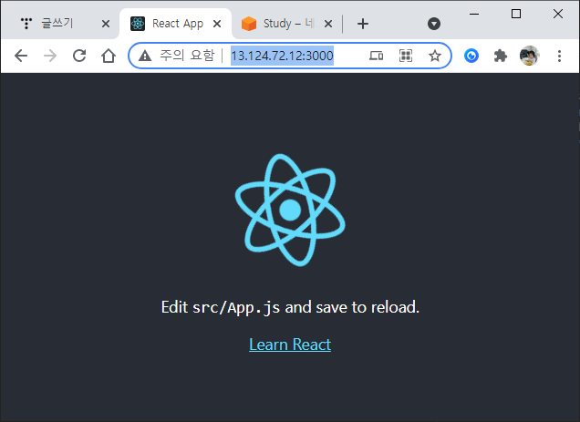 서버 실행 후 브라우저를 통해 서버에 접속해 보자