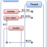 Activity에서 Thread를 생성하여 이용하면서, 생성된 Thread가 Activity의 내부를 참조할 필요가 있을 경우 문제가 발생할 수 있다. Thread가 Activity의 멤버 변수를 참조하는 것은 문제가 없지만, 뷰 객체(GUI 객체)는 참조할 수 없다. 런타임시 문제가 발생한다. 이처럼 뷰 객체와 같이 직접 참조가 불가능한 객체를 참조해야할 필요가 있는 경우에는 Activity에 핸들러를 구현하여 간접 참조하는 방식을 이용한다. 1. 스레드 사용법 public void onCreate(Bundle savedInstanceState) { ... MyThread thread = new MyThread(); thread.setDaemon(true); //Activity가 종료하면, 생성한 th..